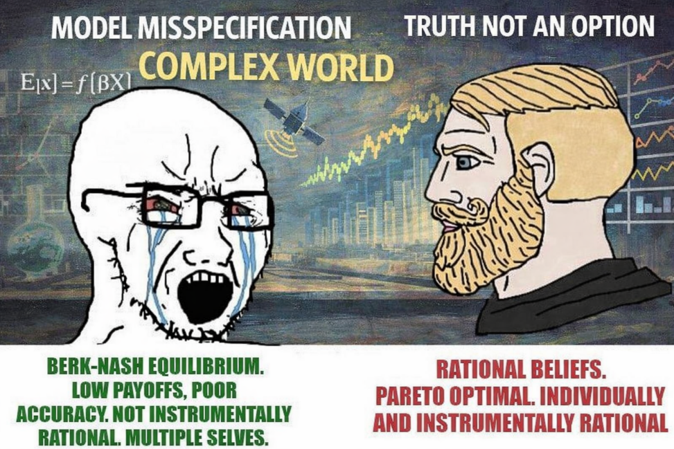 The thumbnail image is of a decision maker that follows Berk-Nash equilibrium being comprehensively outperformed by a decision maker with rational beliefs.